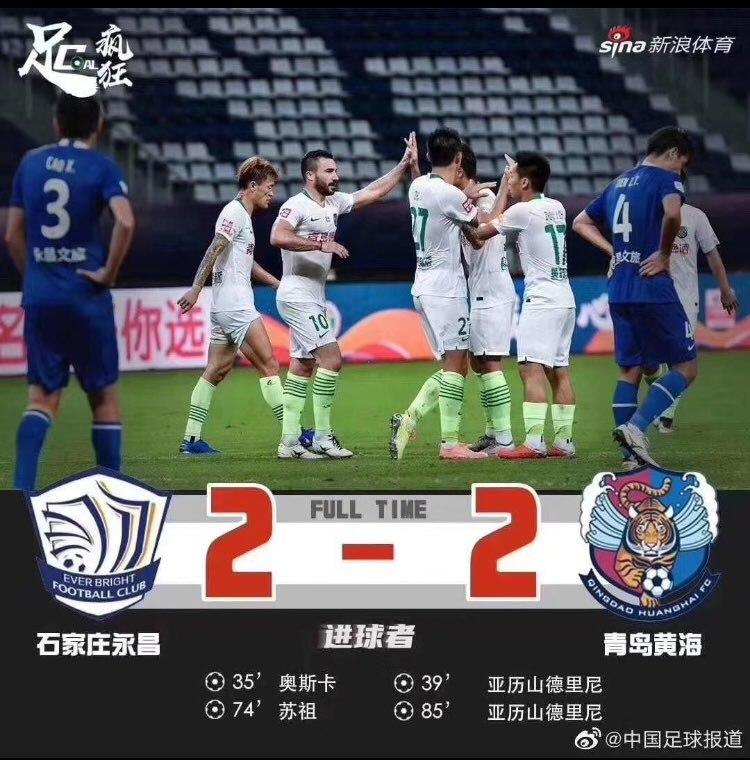 تیم افشین قطبی در دومین بازی خود برابر ژینگدائو هوانگهای به تساوی دو بر دو رسید.