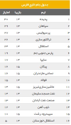 باتوجه به نتایج بدست آمده در هفته پانزدهم جدول جام خلیج فارس مشخص شد.