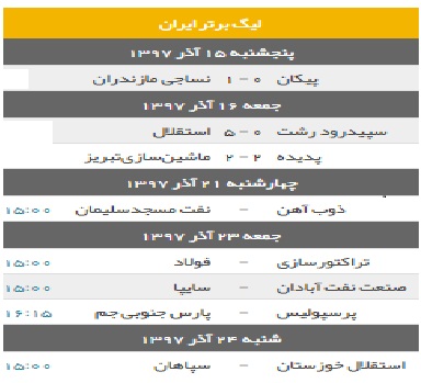 نتایج جام خلیج فارس تا پایان هفته جاری و بازی های این هفته طبق جدول زمانبندی شده.