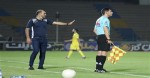هومن افاضلی سرمربی تیم ماشین سازی در دیدار با سایپا از روی نیمکت تیمش را هدایت میکند.
